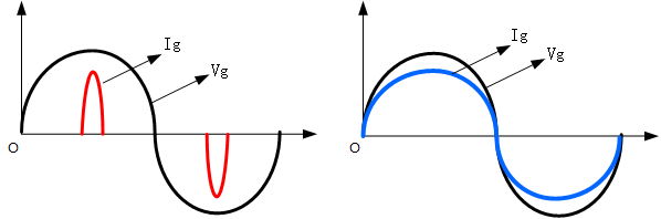 (a) 二极管整流输入电流Ig (b) 加PFC后输入电流Ig