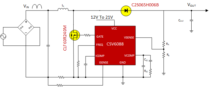 单路PFC芯片CSV6088应用框图: