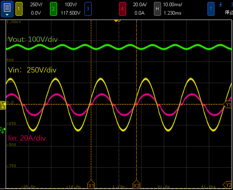 1.5kW满功率稳态波形(PF=0.999,THD<5%)