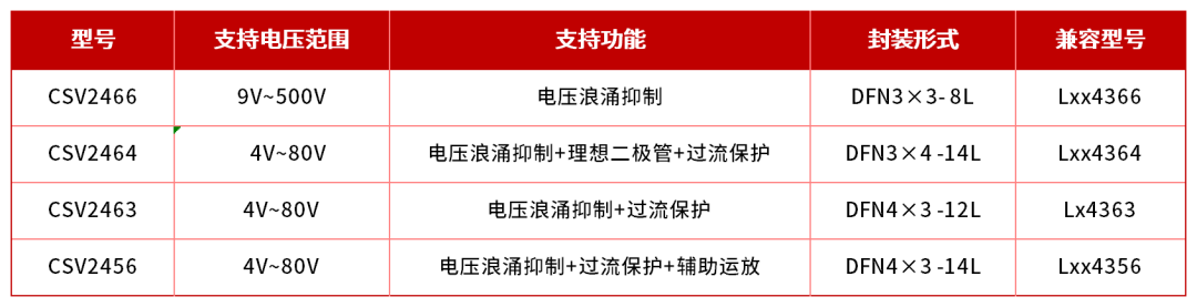 为此,ylzzcom永利总站线路检测重磅推出了具备以下四个核心功能的浪涌抑制器芯片CSV2464: